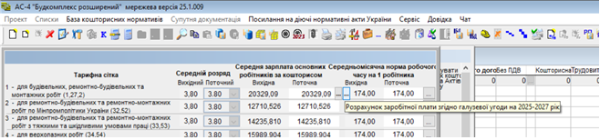При розрахунку цього рівня не враховані доплати та надбавки, передбачені Галузевою угодою в додатку 3, оскільки їх застосування залежить від конкретних умов виконання робіт на певному об’єкті. Для того, щоб зробити розрахунок, натисніть кнопку «Розрахунок заробітної плати згідно галузевої угоди на 2025-2027 роки»: