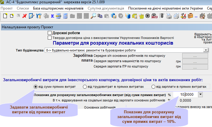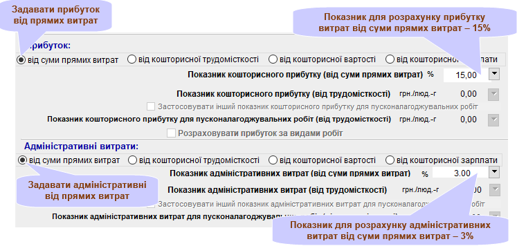 2. В проєктах (будовах) на будівельні роботи за замовчуванням передбачено спосіб розрахунку прибутку, адміністративних та загальновиробничих витрат відсотковим показником від прямих витрат: